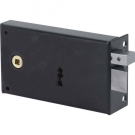En acier cambré. Pêne ½ tour, et pêne dormant en acier. Mécanisme 6 gorges, 2 tours. Rappel à l'équerre. Livré avec gâche et 2 clés. Fo...