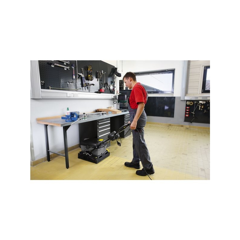 Équipée de brosses rouleaux, permet de brosser, aspirer et lustrer presque tous les revêtements de sol. Système à deux réservoirs eau propre et eau sale. Pression de contact variable. Roues de transport. Deux suceurs droits. Vitesse de rotation brosse : 1100 tr/ min Largeur de travail brosses : 400 mm Largeur d'aspiration : 400 mm Puissance absorbée : 2710 W Réservoir eau propre/sale : 10/10 l Pression des brosses : 100 - 200 g/cm² Rendement surfacique : 400 m²/h Tension : 230 V monophasée Poids : 30 kg Dimensions : 52 x 47 x 38 cm