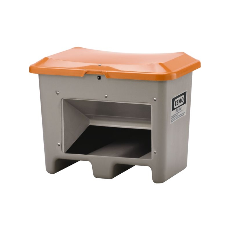 En polyester fibre de verre inaltérable, résistant aux grands froids ou au soleil. Couvercle à ouverture à 100° avec position main libre et fermeture inox cadenassable. Sans ouverture d'écoulement et sans passage de fourche. Contenance : 200 l Dimensions : 89 x 60 x 64 cm Poids : 11,3 kg Bac sans ouverture d'écoulement, sans passage de fourche et autres capacités sur consultation.