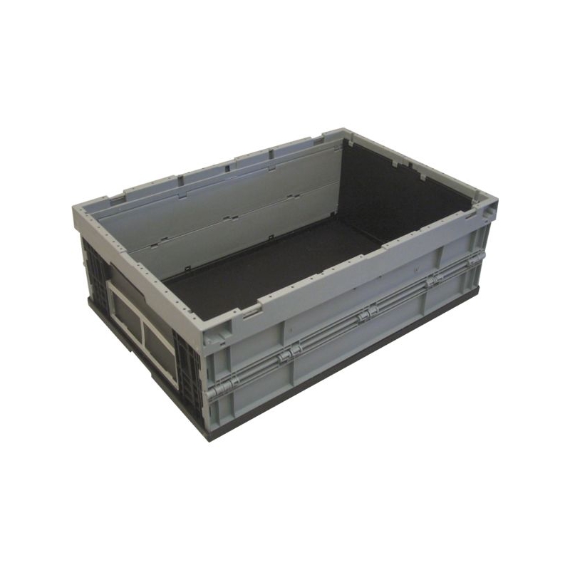 Gerbable et palettisable, en polypropylène (PP) gris de qualité alimentaire. Fonds et parois renforcés. Conforme aux normes européennes, stockage facile sur palette normalisée.