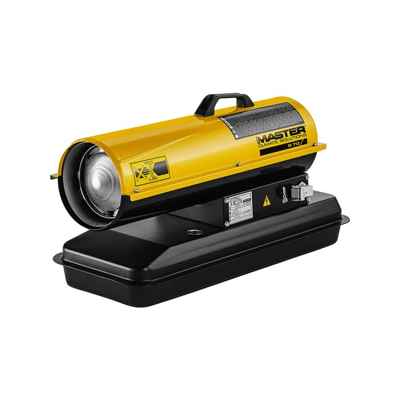 Utilisation en plein air ou dans les locaux professionnels bien ventilés, hors locaux recevant du public. Équipé d'un contrôle de flamme par cellule photo-électrique. Peut être piloté par un thermostat d'ambiance, une horloge ou une minuterie (en option). Carburant : fuel, gasoil, kérosène, pétrole ou GNR Alimentation : 230 V Puissance : 29 kW Débit d'air : 950 m³/h Capacité réservoir : 44 L Poids : 25 kg