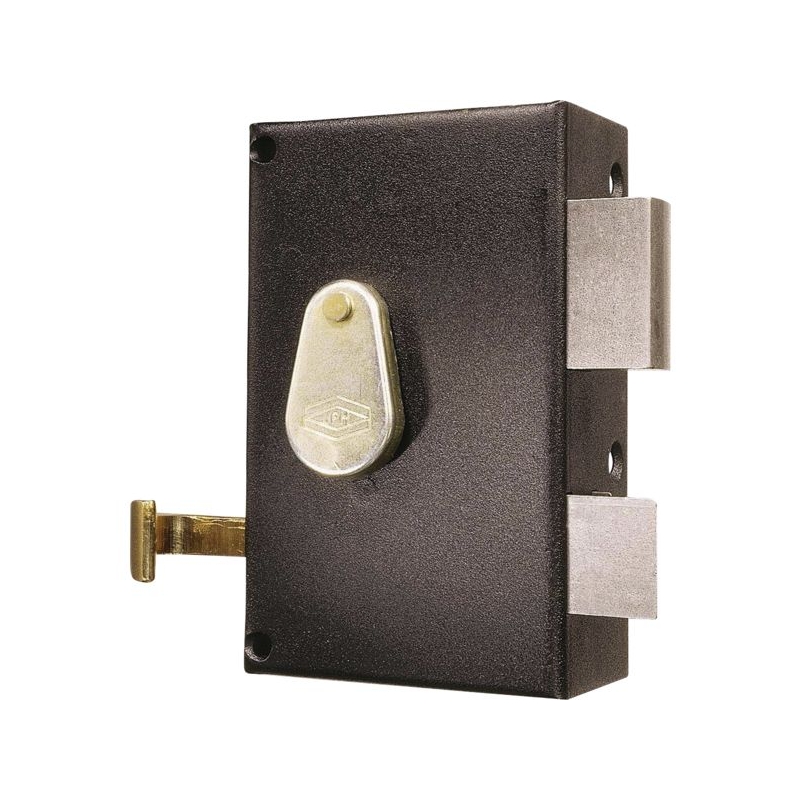 Vertical, à fouillot, pour tout type de porte. Pêne ½ tour en acier zingué. Livré avec gâche et 2 clés. Coffre : 70 x 116 x 25 mm Canon : 40 mm Axe : 44 mm Entraxe : 68 mm Fouillot carré : 7 mm Course du pêne dormant : 16 mm Finition : époxy noir grainé Conditionnement : boite
