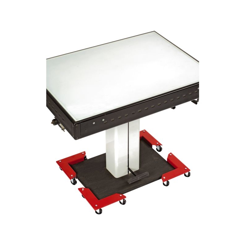 Pour le déplacement de charges encombrantes. En acier, finition peinture époxy avec revêtement antidérapant. Roulettes Ø 50 mm en nylon. Version 300 et 600 kg avec pastille antidérapante et 3 roulettes. Version 800 kg avec tapis antidérapant et 3 roulettes jumelées. Vendu par jeu de 4.