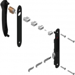 Ferrures adaptables pour plusieurs dimensions afin de répondre aux principaux cas de rénovation. Réglage bi-directionnel du crochet avec vis antidéréglage. Anti-crochetage de l'extérieur, blocage automatique de l'ensemble crochet en position fermée. Réglage du crochet en profondeur par clé 6 pans, course de 5 mm. Réglage latéral, course 6 mm. Kit composé de : - 1 coquille intérieure à condamnation par curseur, fournie avec 3 crochets de longueurs différentes selon distance à la gâche, - 1 poignée extérieure, - 4 paliers selon épaisseur du profil, - 2 longueurs de vis selon épaisseur du profil, - 1 platine intermédiaire, - 1 cylindre. Hauteur : 198 mm Entraxe de fixation : 164 mm Largeur : 24 mm Conditionnement : boite Conforme à la norme EN 13126.19