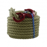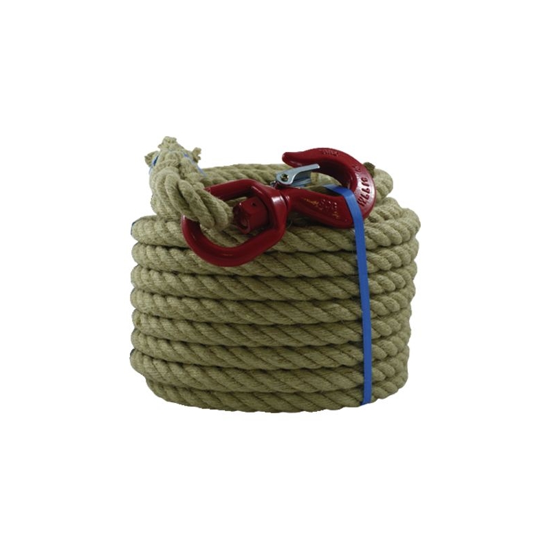 Fibre naturelle montée sur crochet à émerillon avec linguet de sécurité pour utilisation sur poulie. Peu d'allongement, résistance aux nœuds et très bonne tenue en main. Ø : 20 mm Longueur : 25 m Résistance à la rupture : 1410 daN