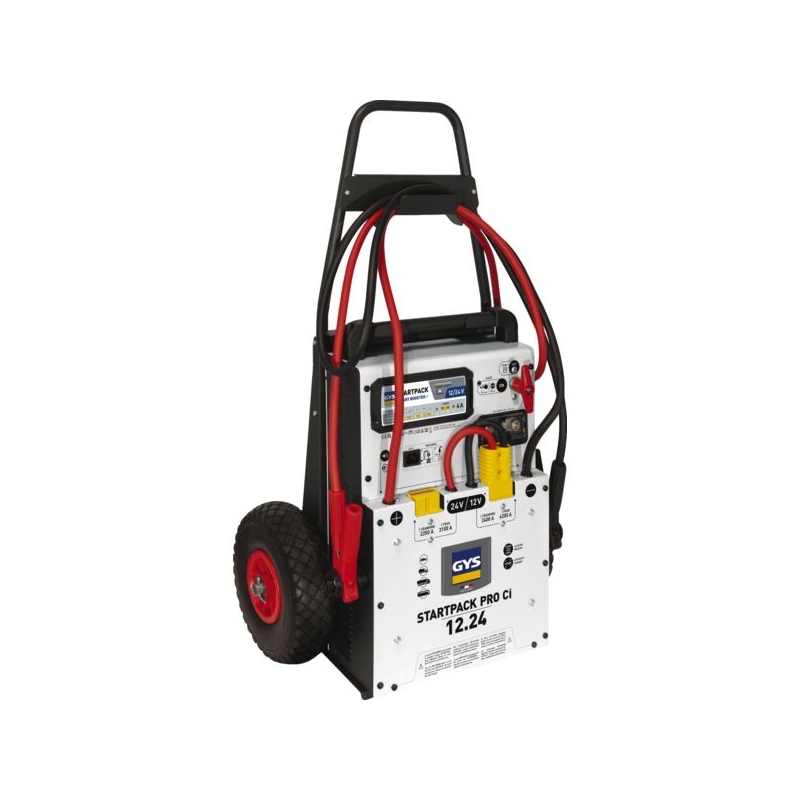 Idéal pour les interventions sur site, grâce à ses 2 batteries intégrées au plomb pur, il démarre tous les véhicules du VL jusqu’au PL. Chargeur des batteries intégré. Protection de l’électronique embarquée. Puissance de démarrage sous 1 V, 1300 A (batterie 12 V) - 1200 A (batterie 24 V). Alimentation : 230 V Dimensions (L x P x H) : 14 x 35 x 56 cm Poids : 45,5 kg