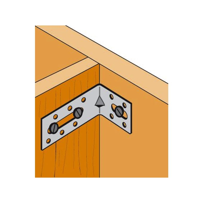 Acier galvanisé. Pour tous les assemblages d'agencement et de pose de menuiseries intérieures et extérieures. Le raidisseur augmente la rigidité. Boîte de : 100