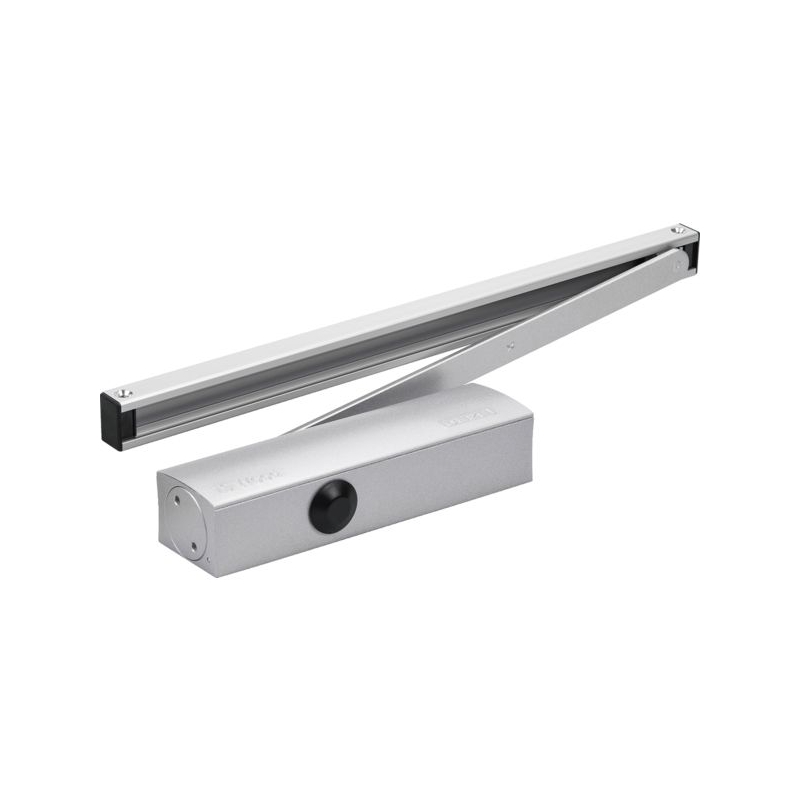 Technologie crémaillère elliptique, bras glissière. Force fixe 3 pour porte intérieure bois. Montage universel côté paumelles et côté opposé aux paumelles. Conforme aux normes NF EN 1154 et NF EN 1634. Homologué CE, CF/PF et PMR. Largeur du vantail : jusqu'à 950 mm Poids du vantail : jusqu'à 100 kg Angle d'ouverture : 105° Conditionnement : boite