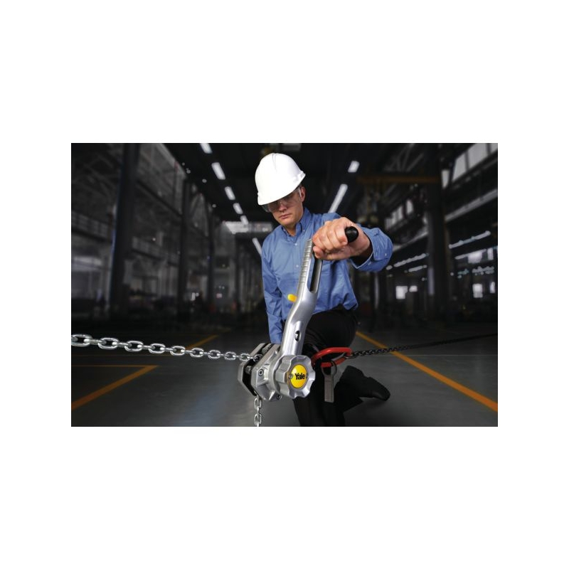 Corps aluminium, chaîne zinguée. Poignée rabattable dans le levier pivotant à 360°. Augmente la productivité, permet à l’opérateur de travailler jusqu’à 12 fois plus vite qu’avec un palan à levier conventionnel. Il n’est plus nécessaire d’utiliser son autre main pour stabiliser le palan. Indicateur de direction dans le levier: montée, descente, neutre.