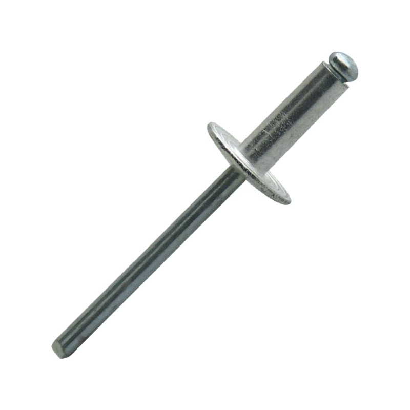 Rivet aveugle standard à tête large Ø 14 mm. Corps aluminium et tige acier. Ø perçage : 4,9 mm Boîte de : 250