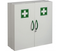 Pour atelier, infirmerie, vestiaire... En acier poudré anti-UV blanc, portes sérigraphiées 'croix verte' et autocollant 'cons...